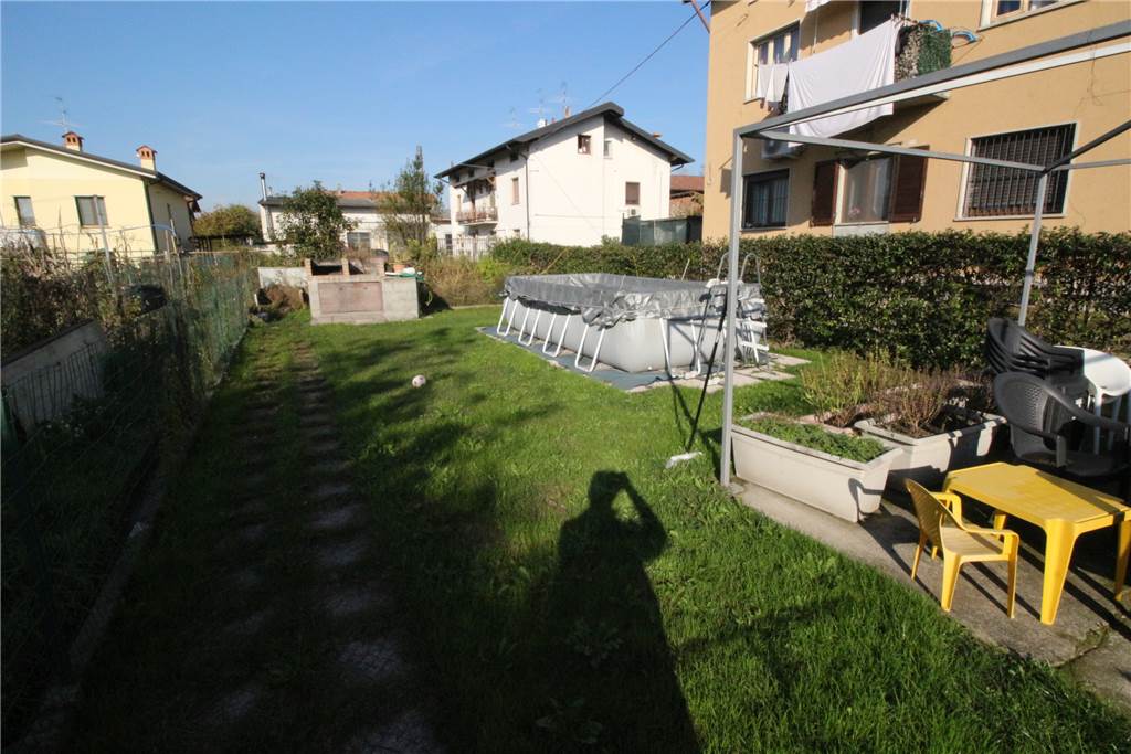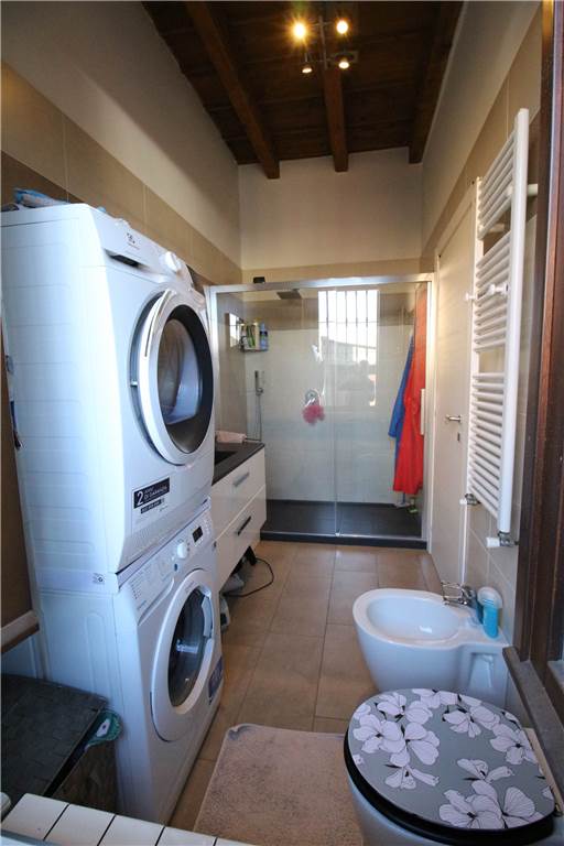 Appartamento esclusivo su due livelli con travi a vista, doppi servizi, giardino, cantina e posto auto coperto sito in zona centrale del comune di Brembate in provincia di Bergamo, nelle immediate vicinanze del casello autostradale